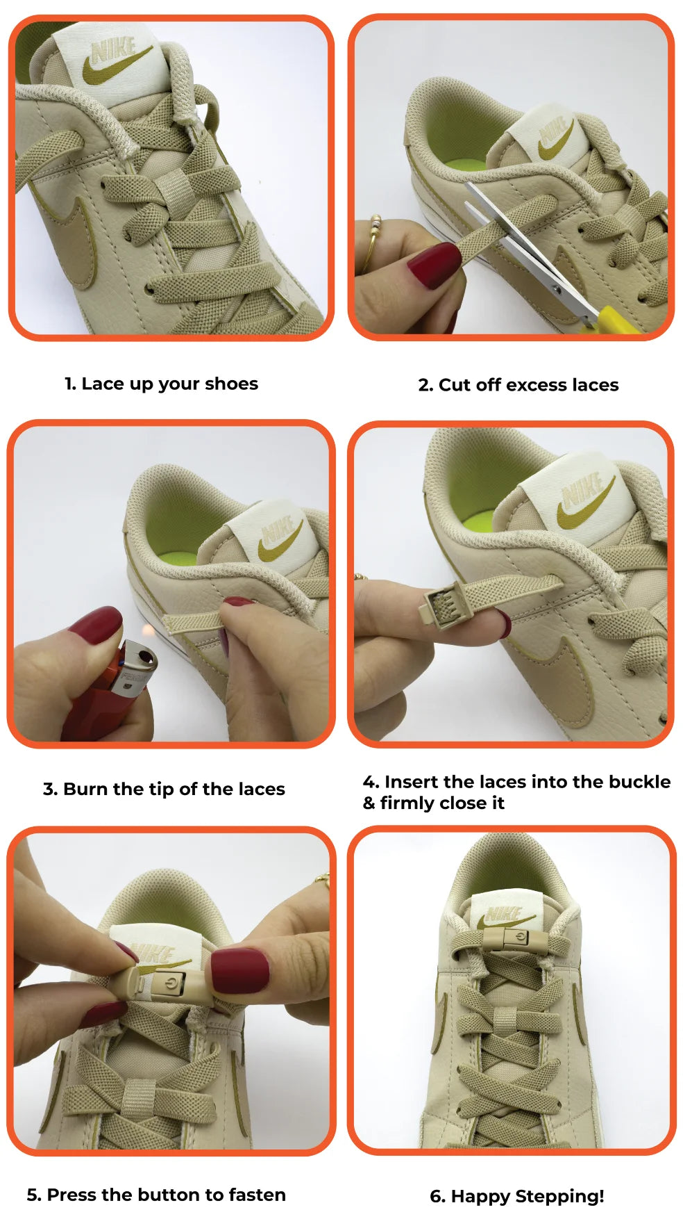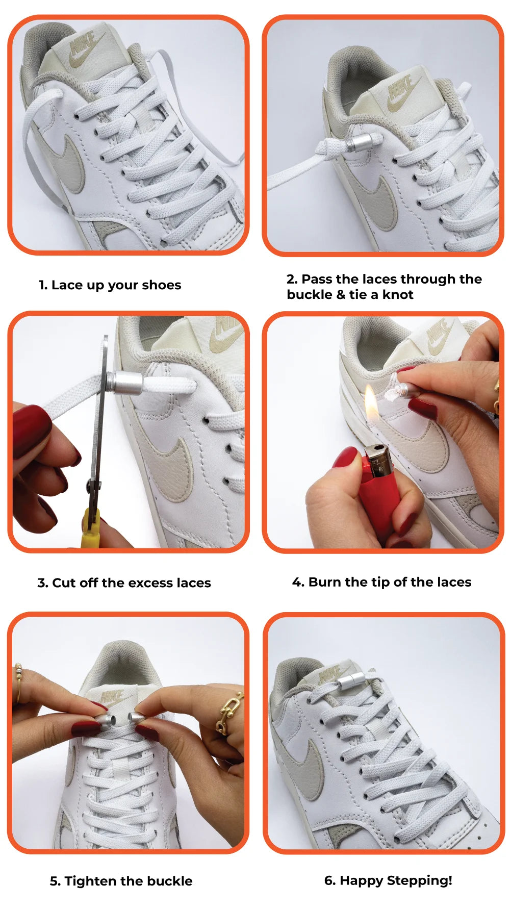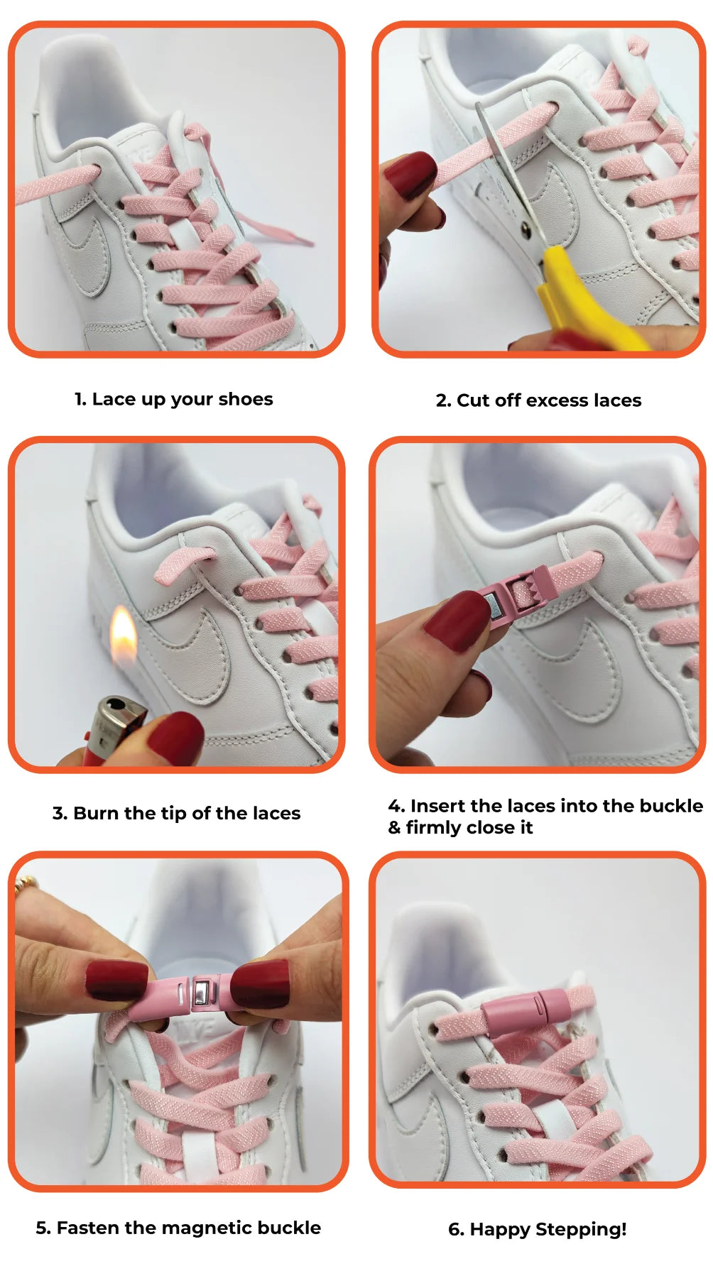 How to turn your shoes into stylish slip-ons. No-tie shoelaces instructions for Magnetic, Lock, Push, Sports Buckles and Silicone Laces.